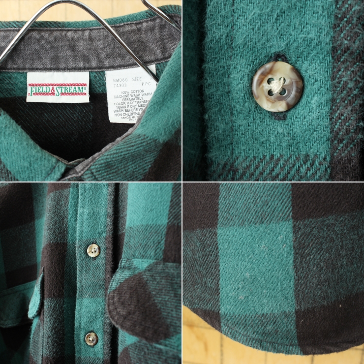 ビッグサイズ 90s 00s USA FIELD&STREAM ヘビーフランネルチェックシャツ メンズXL グリーン アウトドア 長袖 アメリカ古着です。