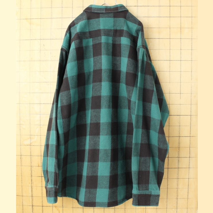ビッグサイズ 90s 00s USA FIELD&STREAM ヘビーフランネルチェックシャツ メンズXL グリーン アウトドア 長袖 アメリカ古着
