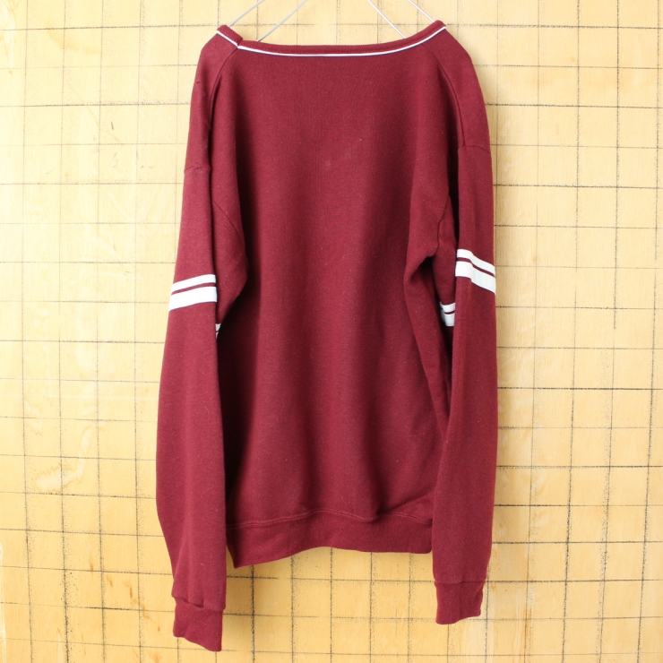 70s USA製 Sportswear Vネック プレーンスウェット ボルドー レッド メンズM 無地 アメリカ古着です。