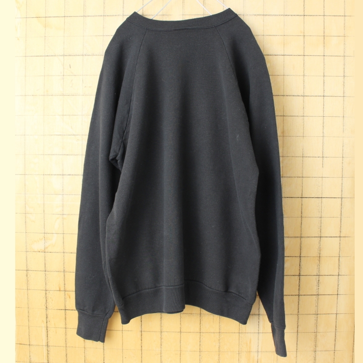 80s 90s USA製 FRUIT OF THE LOOM プレーンスウェット ブラック メンズXL 無地 アメリカ古着