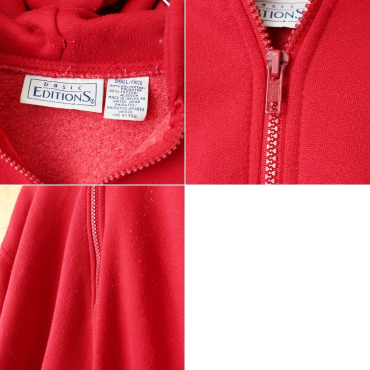 90s USA basic EDITIONS ジップアップスウェットパーカー レッド メンズS フーディー 無地 アメリカ古着です。