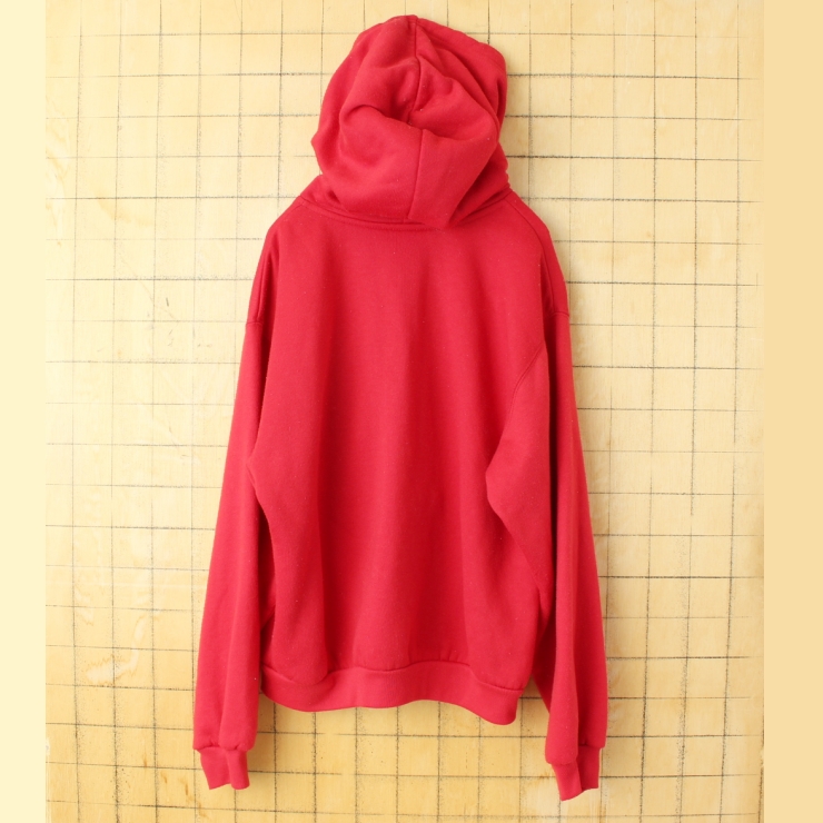 90s USA basic EDITIONS ジップアップスウェットパーカー レッド メンズS フーディー 無地 アメリカ古着