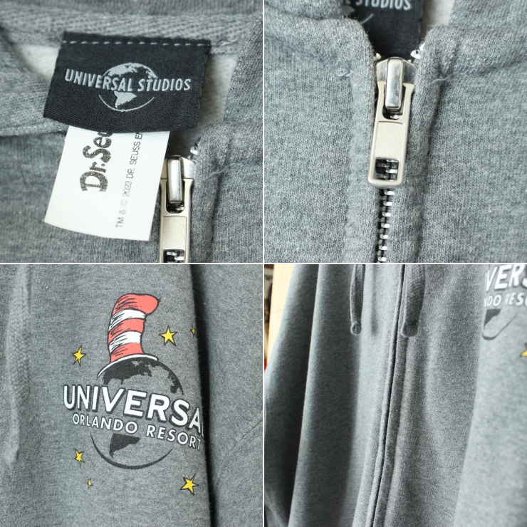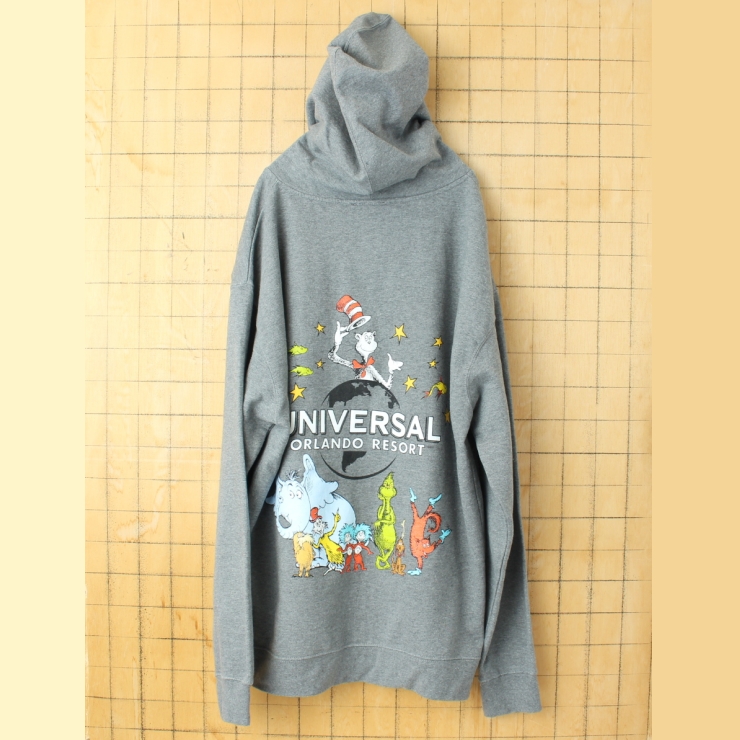 USA UNIVERSAL ORLANDO RESORT Dr.Seuss ジップアップスウェットパーカー グレー メンズL フーディー プリント アメリカ古着