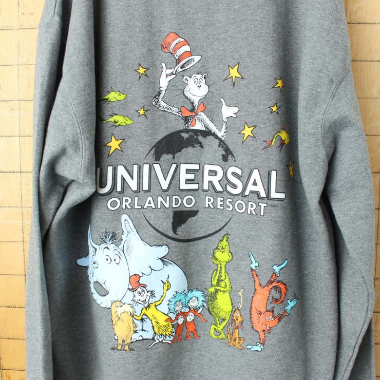 USA UNIVERSAL ORLANDO RESORT Dr.Seuss ジップアップスウェットパーカー グレー メンズL フーディー プリント アメリカ古着です。