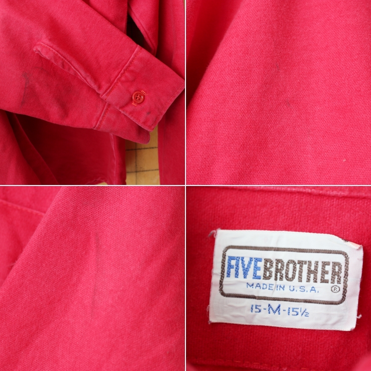80s 90s USA製 FIVE BROTHER コットン シャモアクロスワークシャツ メンズM アウトドア レッド 長袖 5 アメリカ古着です。