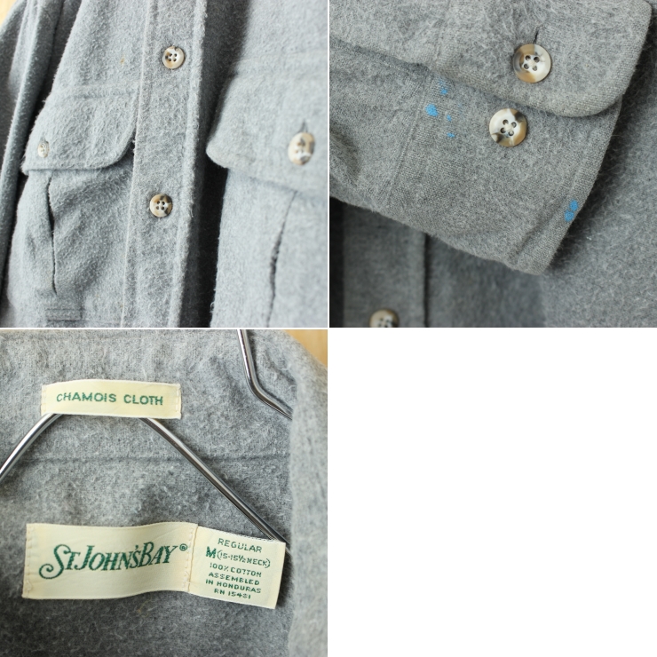 90s USA ST JOHN'S BAY コットン シャモアクロスシャツ グレー メンズM 長袖 アウトドア アメリカ古着です。