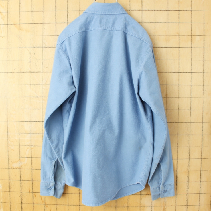 80s 90s USA製 ORVIS コットン シャモアクロスシャツ ライトブルー メンズM 長袖 アウトドア アメリカ古着