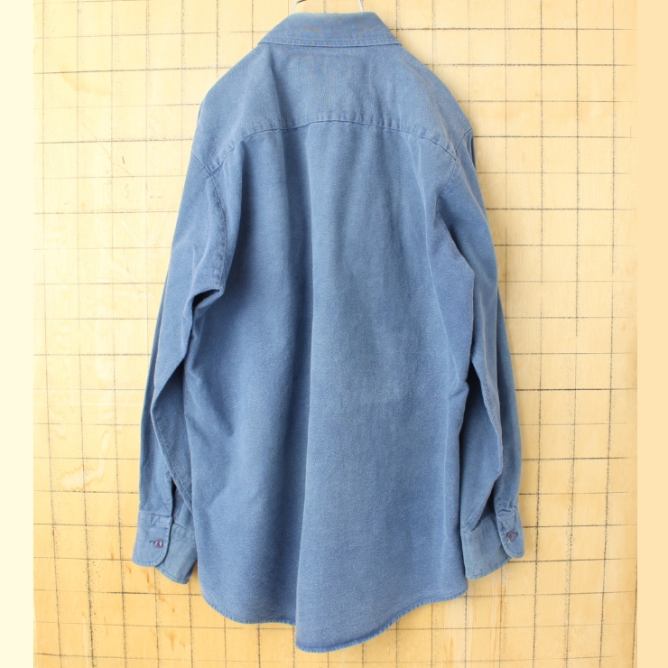 70s 80s USA Kmart コットン シャモアクロスシャツ ネイビー ブルー メンズL 長袖 アウトドア アメリカ古着