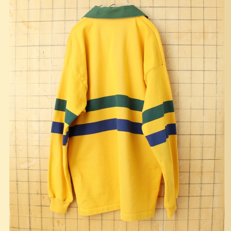 90s オーストラリア製 Jaxen Sports Wear BY Silver Fleece 長袖 ラガーシャツ イエロー メンズML相当 ラグビー 古着