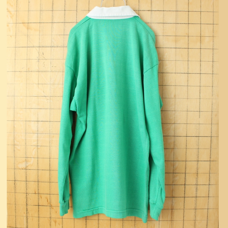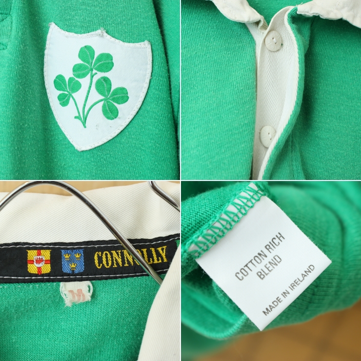 80s アイルランド製 CONNOLLY 長袖 ラガーシャツ グリーン メンズM ラグビー ヨーロッパ古着です。