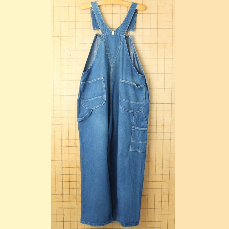 80s 90s USA Key Imperial デニムオーバーオール W42 ボタンフライ ブルー アメリカ古着