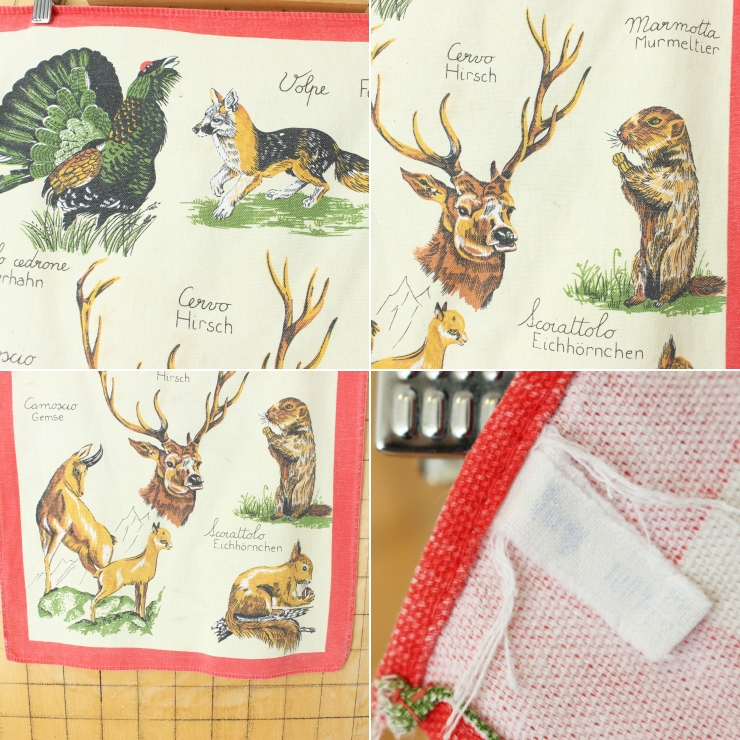 60s 70s フランス ヴィンテージ シカ マーモット アニマルプリントティータオル タペストリー ファブリック ヨーロッパ古着