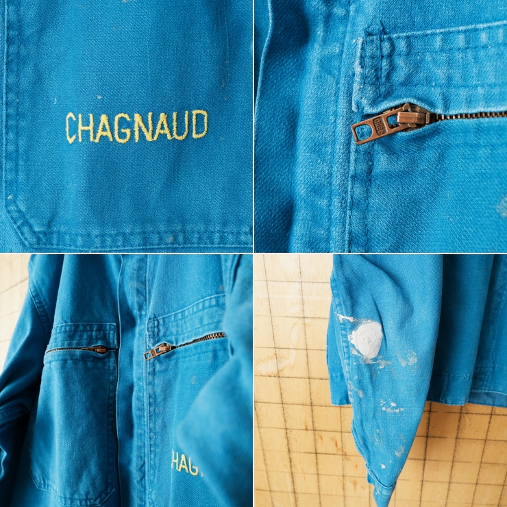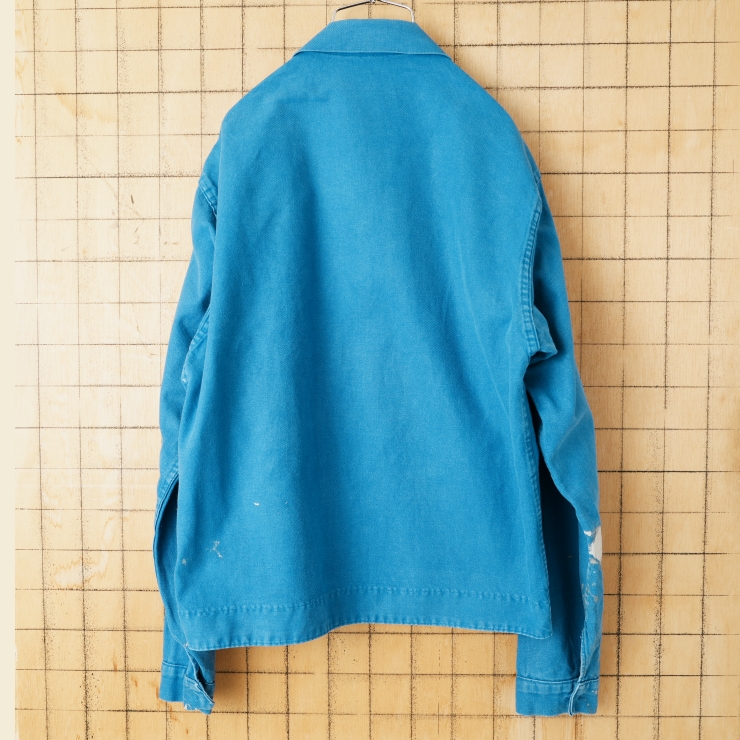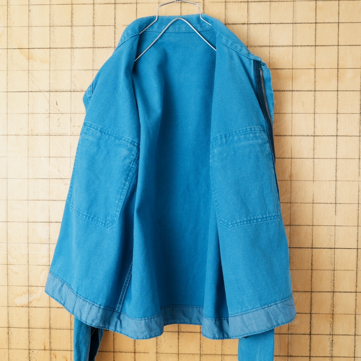 70s 80s EURO CHAGNAUD ジップアップ コットンツイルワークジャケット カバーオール メンズML相当 ブルー ユーロ ヨーロッパ古着