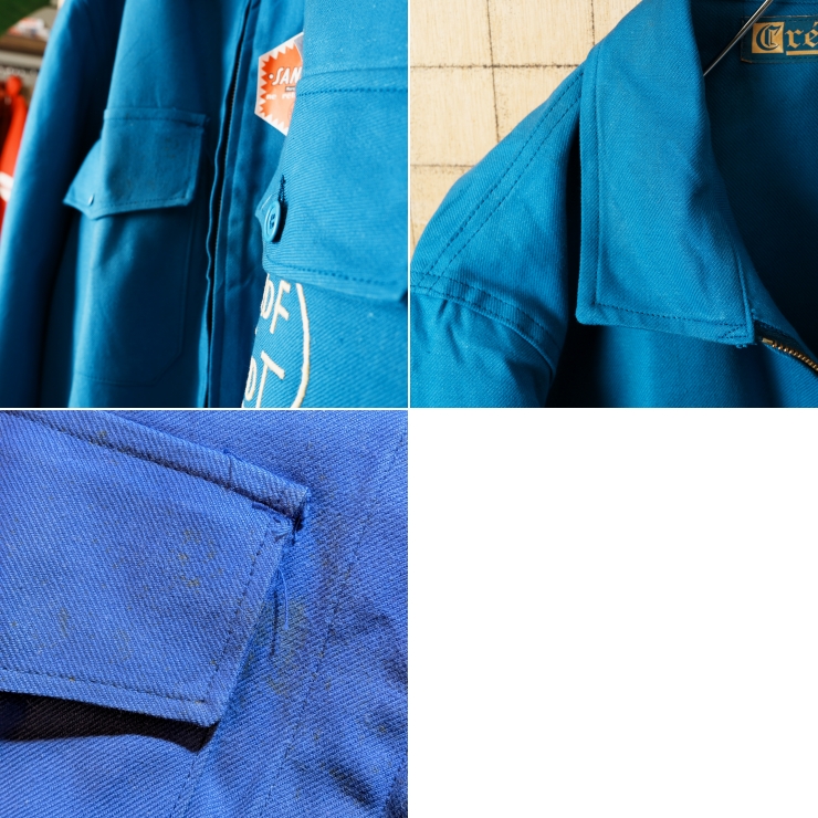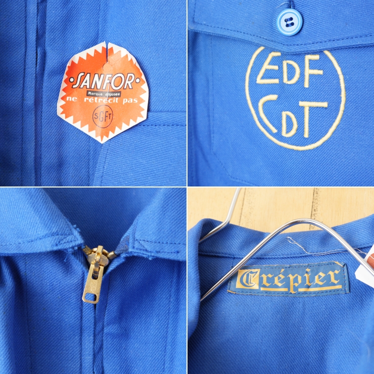 デッドストック 70s 80s EURO Crepier EDF CDT ジップアップ コットンツイルワークジャケット カバーオール メンズL相当 ブルー ユーロ ヨーロッパ古着です。