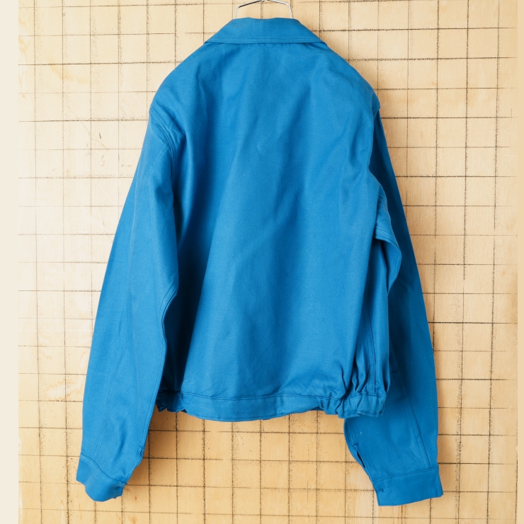 デッドストック 70s 80s EURO Crepier EDF CDT ジップアップ コットンツイルワークジャケット カバーオール メンズL相当 ブルー ユーロ ヨーロッパ古着