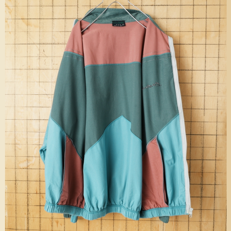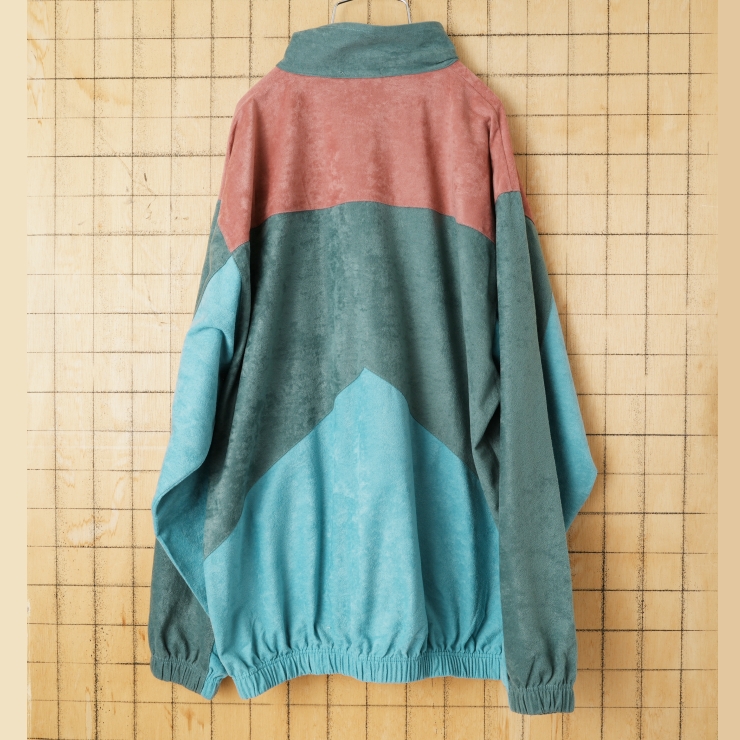 90s 00s イタリア製 Blu Stone ベロアトラックジャケット ジップアップジャージ ブルー ピンク メンズXL ヨーロッパ古着