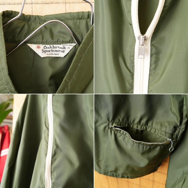 70s 80s USA Oakbrook Sportswear Sears ジップアップナイロンジャケット メンズL相当 グリーン アメリカ古着です。