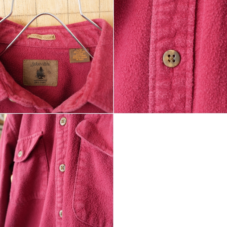 90s USA ST JOHN'S BAY コットン シャモアクロスシャツ ボルドー レッド メンズL 長袖 アウトドア アメリカ古着です。