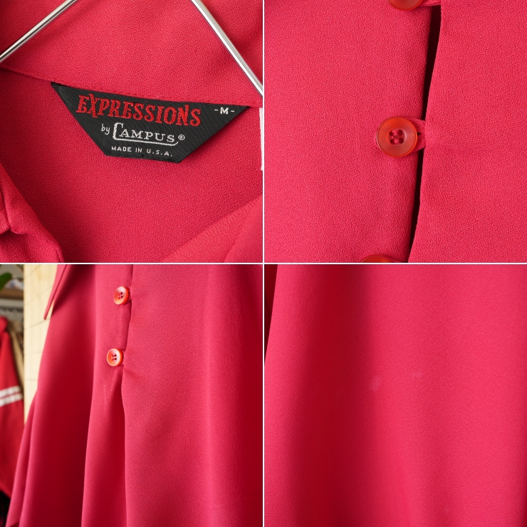 70s 80s USA製 EXPRESSIONS by CAMPUS プルオーバーシャツ レッド メンズM 長袖 アメリカ古着です。