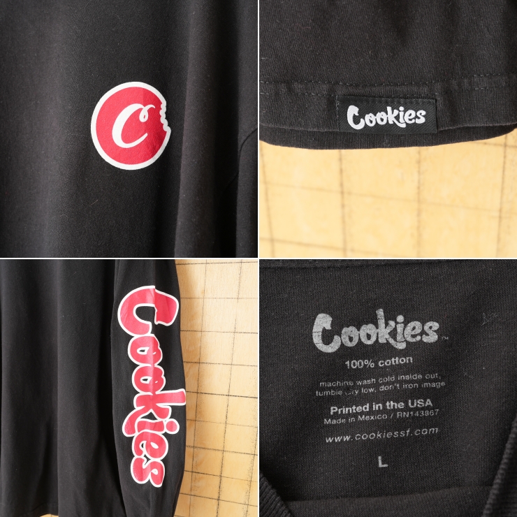 USA Cookies プリント長袖Tシャツ ロンT ブラック メンズL アメリカ古着です。