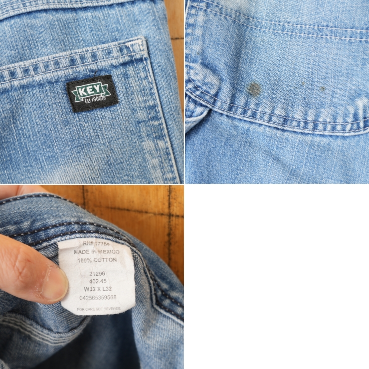 90s 00s USA KEY デニムペインターパンツ ブルー W33 ワーク 色落ち アメリカ古着です。