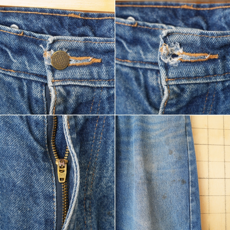 カラーは風合いよく色落ちしたブルー、程よい厚みのあるしっかりとしたデニム生地です。