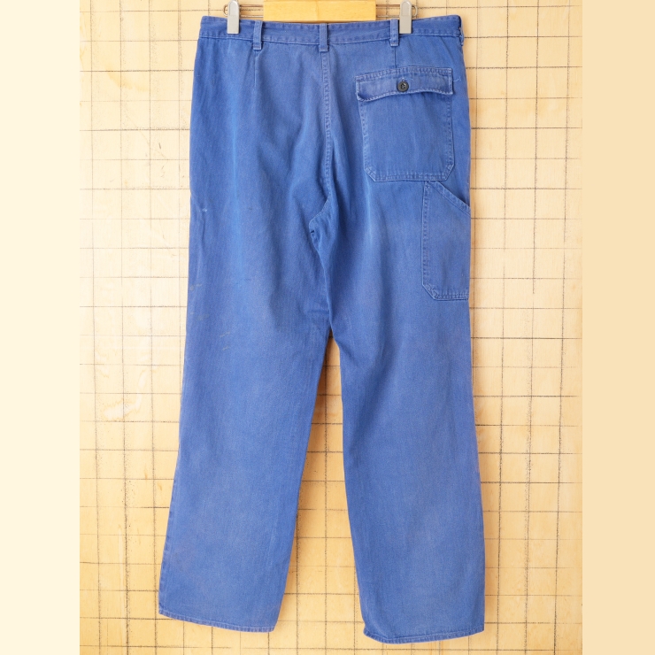 70s 80s EURO コットンヘリンボーンツイル ワークペインターパンツ W34相当 ネイビーブルー ユーロ ヨーロッパ古着