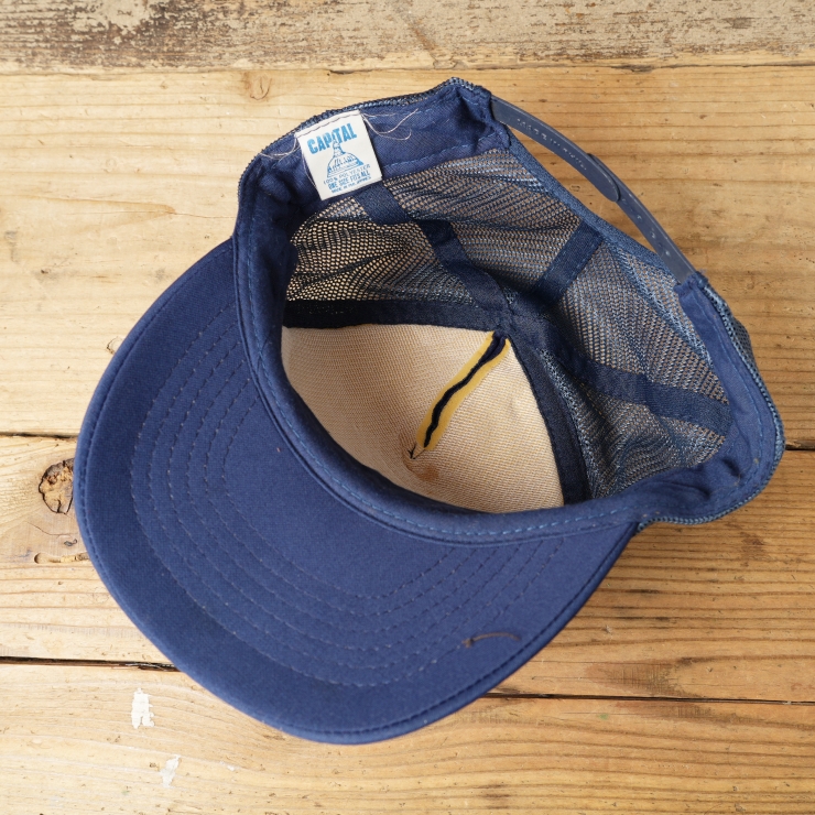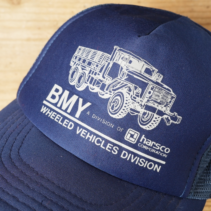 80s 90s USA BMY harsco CORPORATION メッシュキャップ 帽子 ネイビー ブルー フリーサイズ アメリカ古着
