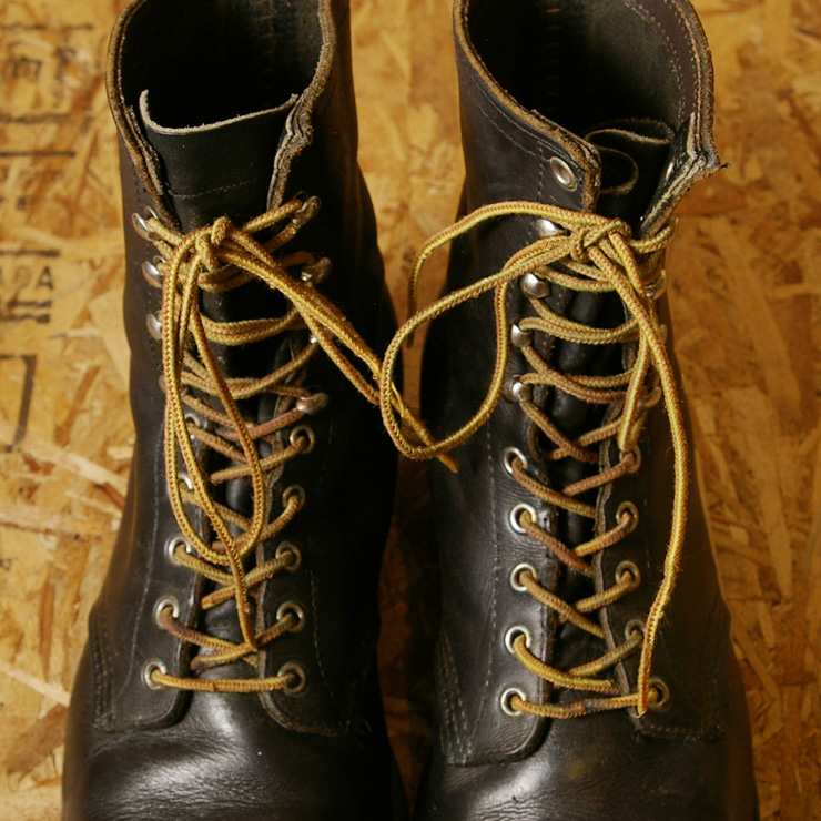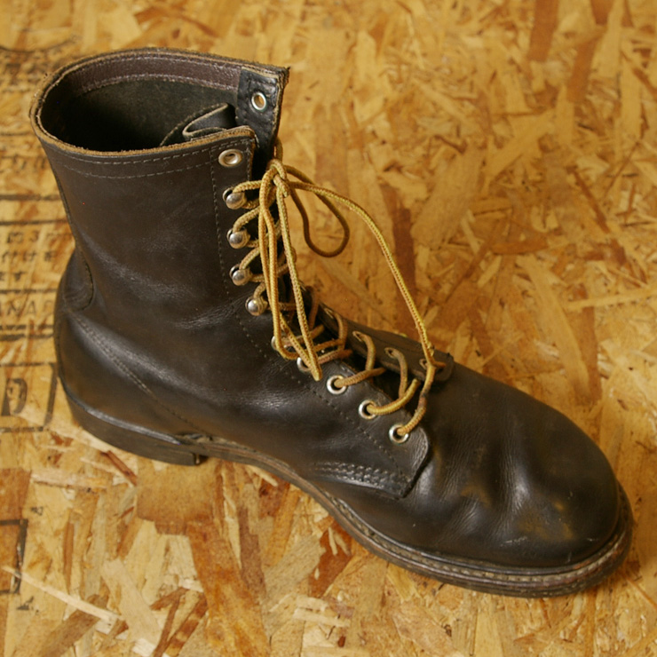 【RED WING】USA製プリント羽タグ70s-80sブラック本革レザー編み上げワークブーツ|サイズUS10|28.5cm相当です。