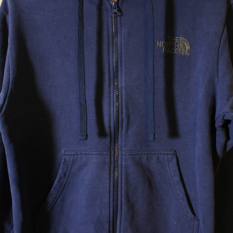 【THE NORTH FACE】古着ネイビー無地ジップアップスウェットパーカー|メンズSです。