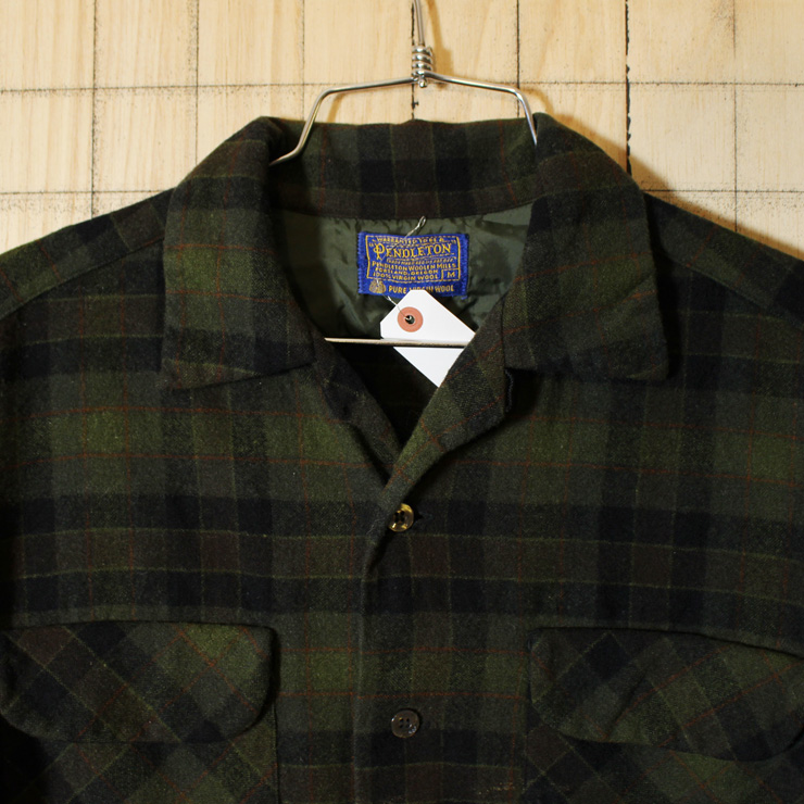 【pendleton】USA製60sビンテージ古着グリーン×ブラックウールチェックボックスシャツ|メンズM|sy-l-243です。