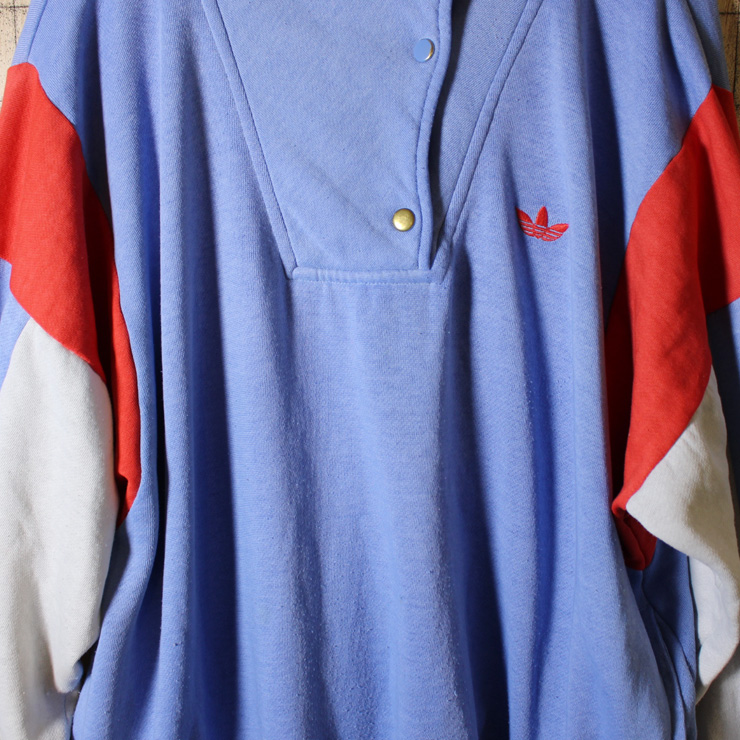 adidas/ビンテージ80s古着ライトブルー×レッドプルオーバースウェット/メンズLサイズです。
