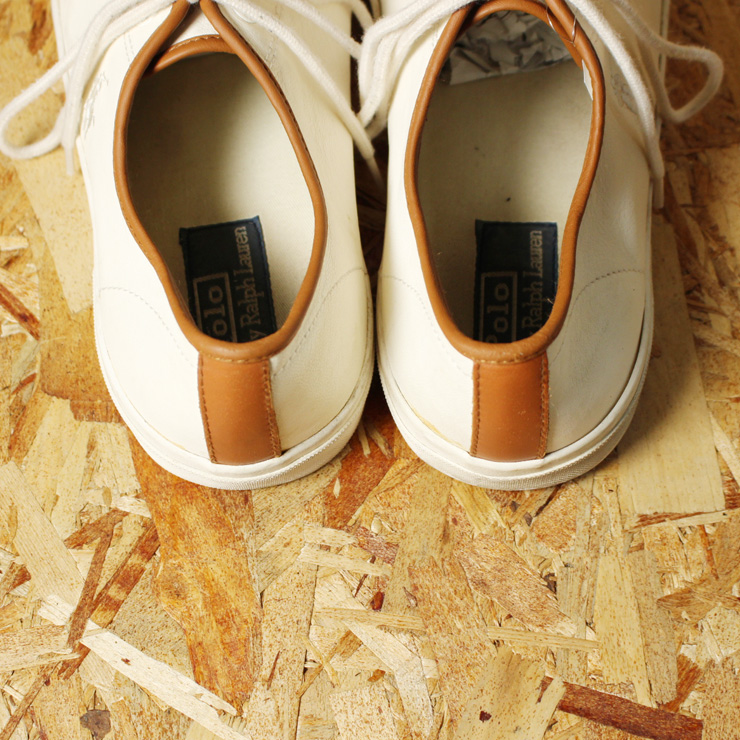 Polo by Ralph Lauren Ferguson ポロ ラルフローレン USED ホワイト キャメル ソフトレザー ローカット スニーカー 11.5D メンズ 29.5cm
