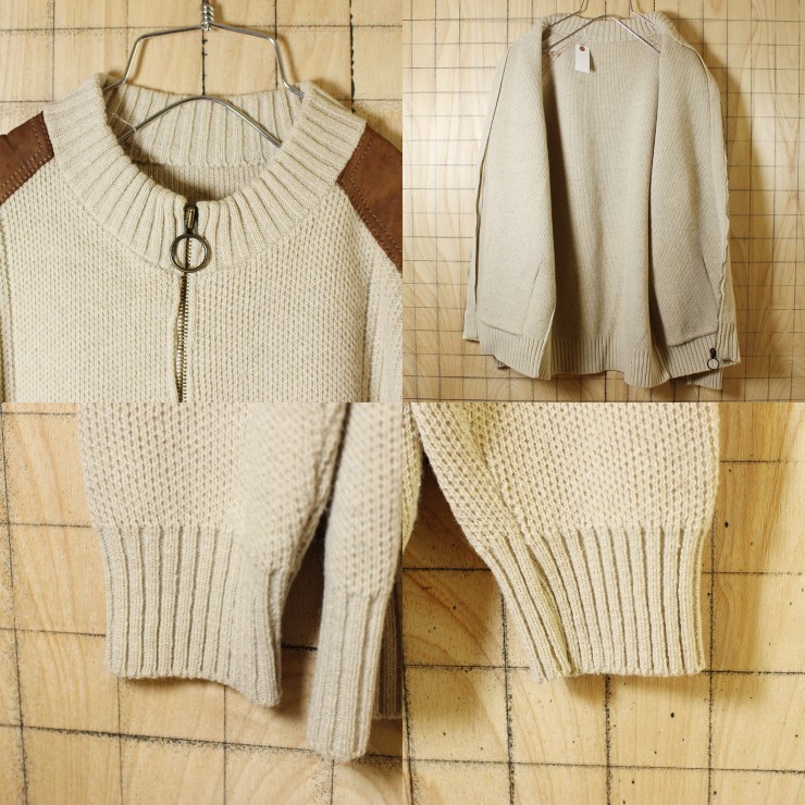 euro製ビンテージ古着/ベージュ/ジップアップニットカーディガン/メンズM相当です。