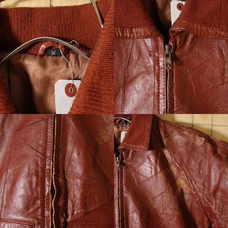 古着/レッドブラウン/フェイクレザーパッチワークジャケット/メンズMです。