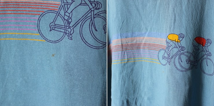 ボディにサイクルロードレース風の柄がプリントされています。