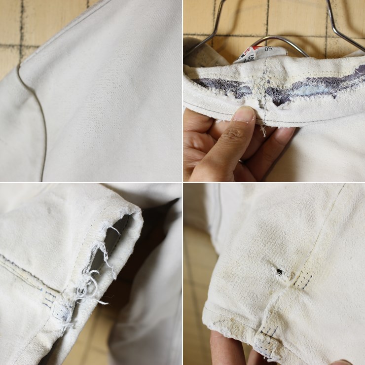 euro ヨーロッパ ビンテージ ドイツ製 古着 オフホワイト モールスキン ワークジャケット メンズM相当 ダメージ リペア リメイクです。