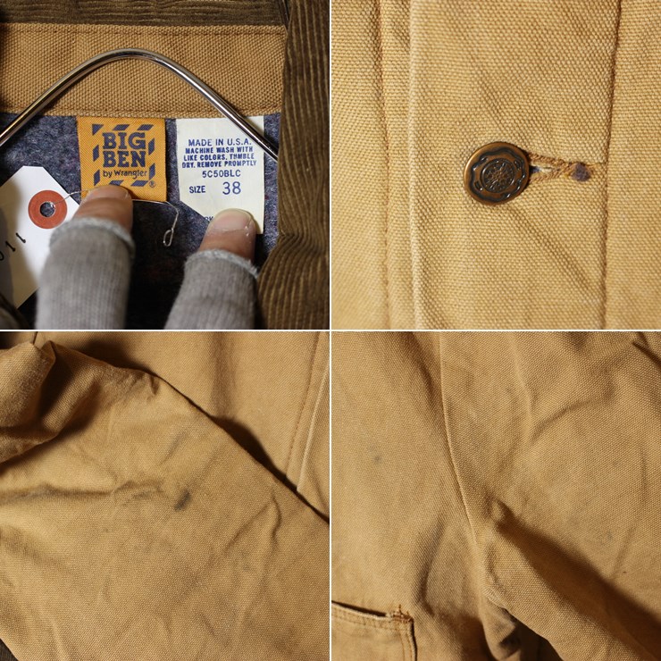 USA製 BIGBEN 古着 ライトブラウン ダックジャケット 裏地ブランケット 38 メンズM相当 カバーオール Wranglerです。