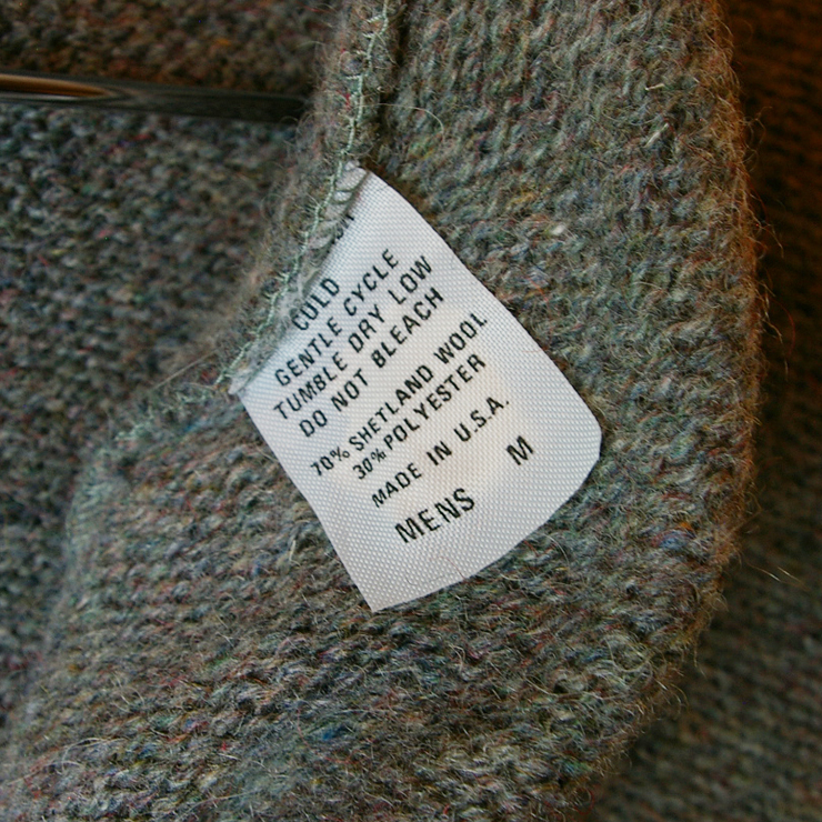 【Emple】USA(アメリカ)製古着グレーシェットランドウールニットカーディガンです。