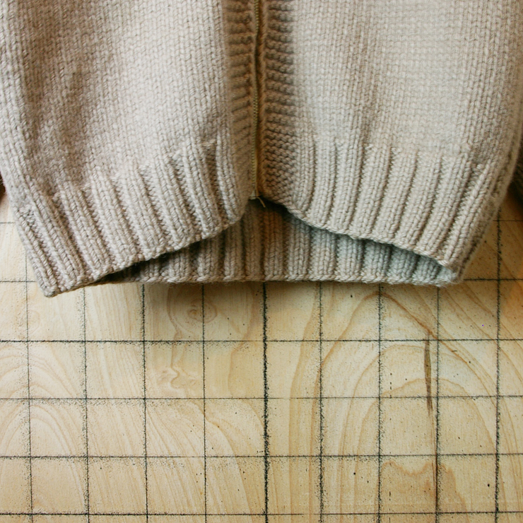 【ビンテージ】70s古着雪結晶×波柄Lightning社製ファスナーベージュカウチンセーターです。