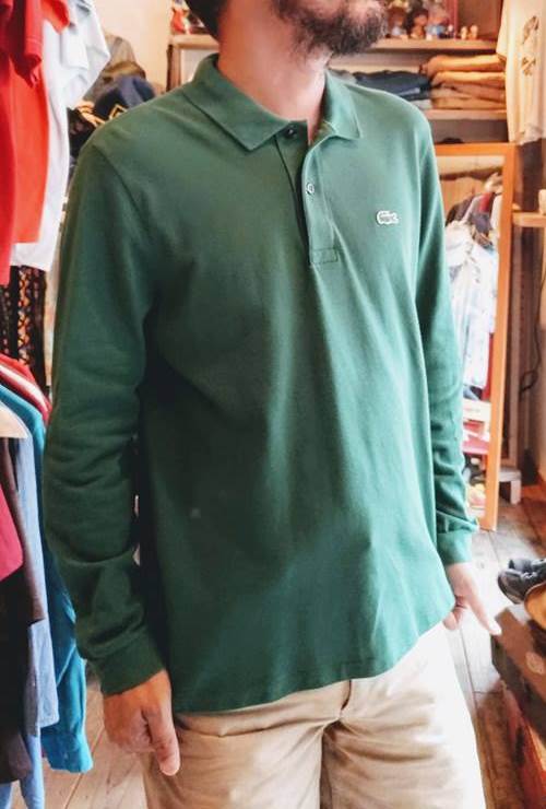 フレンチラコステ Lacoste ワンポイント ポロシャツ 長袖 グリーン メンズM相当 フランス企画 古着 ss5です。