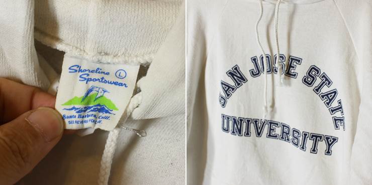 USA製 古着 カレッジプリント スウェットパーカー ホワイト メンズL トレーナー SAN JOSE STATE UNIVERSITY Shoreline Sportswearです。