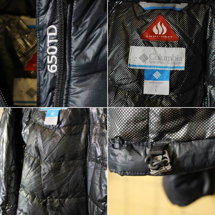 Columbia コロンビア OMNI-HEAT ダウン ジャケット パーカー ジップアップ ブラック レディースL 650 Turbo Down 古着 フードです。