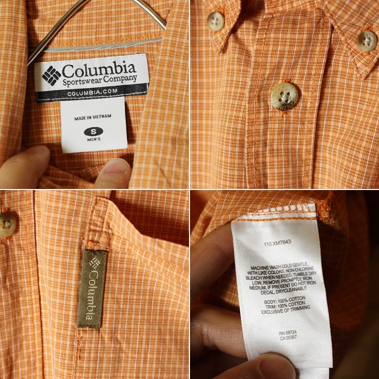 Columbia コロンビア チェック ボタンダウン シャツ 半袖 メンズS オレンジ 古着です。