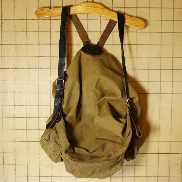 euroミリタリー ヨーロッパ製 ベージュ キャンバス レザーベルト リュックサック 042419ss184