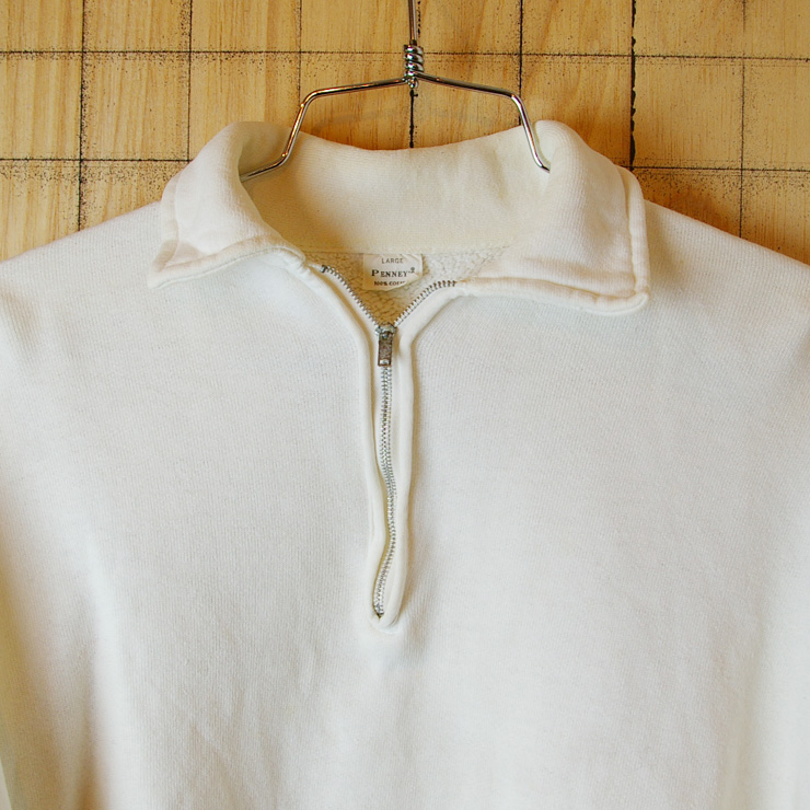 【PENNEY'S】USA製60sビンテージ古着コットン100%ホワイト無地ハーフジップスウェットです。