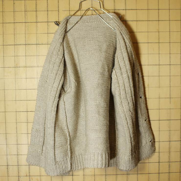 ヨーロッパ古着 ウール アラン ニット カーディガン メンズM相当 ベージュ Vネックです。