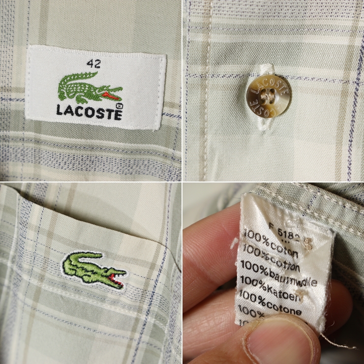 フレンチラコステ Lacoste 半袖 ボタンダウン チェック シャツ グリーン グレー メンズL相当 ヨーロッパ古着
