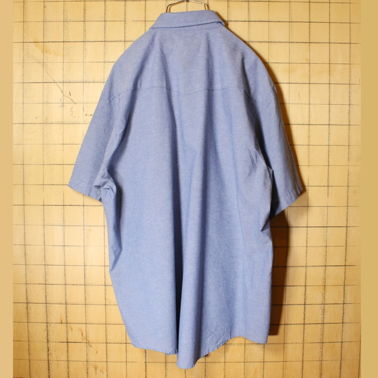 ビッグサイズ 70s 80s USA製 RED KAP レッドキャップ 半袖 ワークシャンブレー シャツ ブルー メンズXL ワッペン Ingersoll-Rand 古着