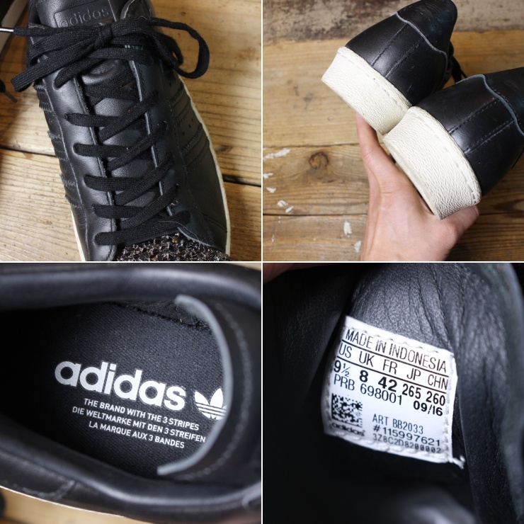 adidas SUPERSTAR METAL TOE アディダス スーパースター メタル ブラック レザー スニーカー シューズ メンズ26.5cm 海外モデル アメリカ古着です。